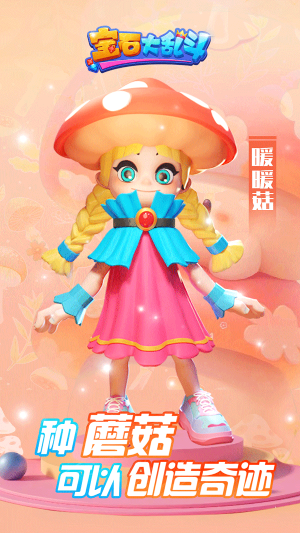 这位头顶红白大蘑菇的女孩叫做暖暖菇,她生活在宝石精灵世界中的一片仙境森林。她与森林中的动物作伴,森林就是她的家!曾经的她没有蘑菇,是一位再普通不过的女孩,能令人驻足的只有她一双与众不同的绿瞳。