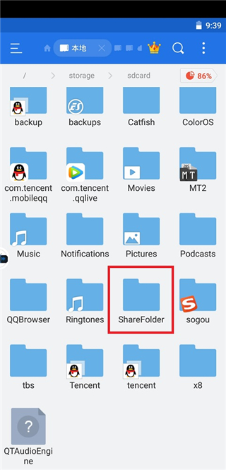 完整路径:/sdcard/x8zs.sanbox/ShareFolder