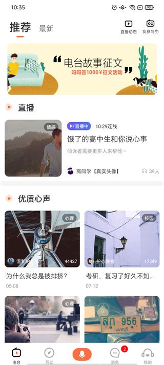 在电台中,我们可以看见不同类型的电台内容。