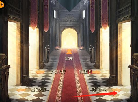 战功商城前往方式:点击联盟→联盟物资→战功商城