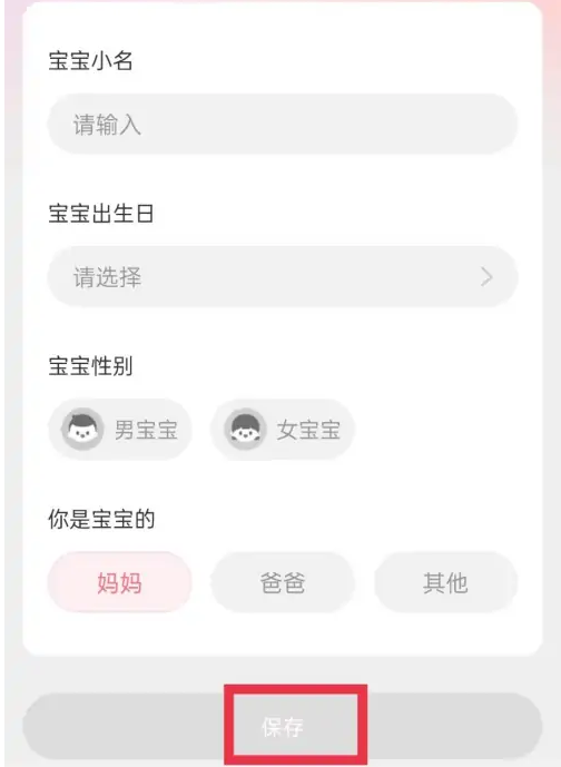 在当前页面单击宝宝,输入宝宝信息,单击保存即可。