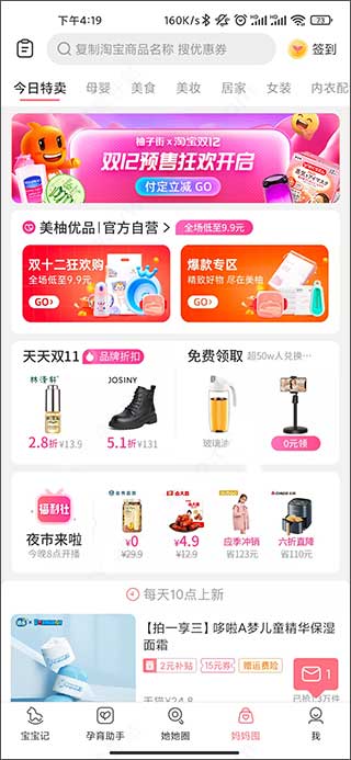 此外这里还打造了一个妈妈圈功能,主要就是提供了母婴商城