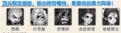天地宫:以毒术闻名,持续输出能力强,通关副本优选阵容。