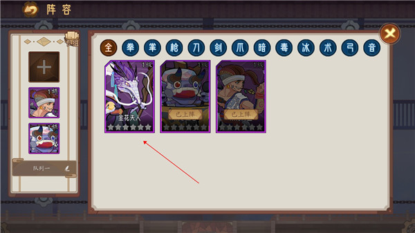 有了新的卡牌可以在【阵容】里安排它们出战。