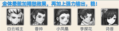 神仙斋:主要以全体减怒气为主,全体伤害。