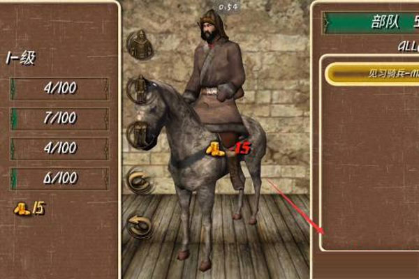 快速升级:开局卖掉全部装备,并在城池内的商店购买一把攻击为60+的弓)在大宋的城池内招募教练(不知道怎么招募npc的新手请看文章结尾的补充内容),在蒙古招募向导。教练可以在两天内把领主升到3级,加上初始的属性点,可以把弓属性点满100点。随意挑选一个你喜欢的村子,选择攻入敌阵,利用弓的超远射程攻击敌人,此方法可以很简单刷到15级。