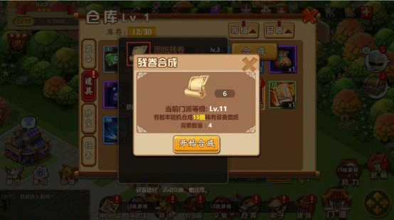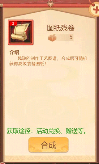 →提醒一下:合成特殊图纸时,是随机合成的,而且合成的等级也是根据门派等级决定的,比如门派1-9级时,合成的特殊图纸都是5级的;门派10-19级,合成的是15级的图纸;20-29级,就合成25级的图纸。以此类推。