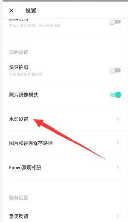 进入到相机设置界面后,滑动界面找到“【水印设置】”的选项,点击进入