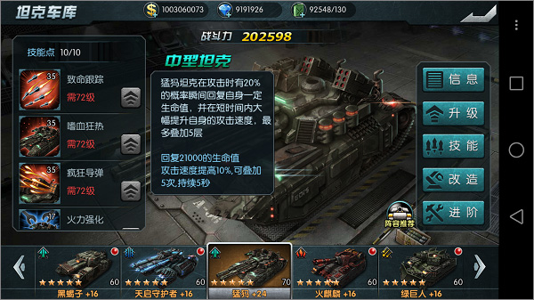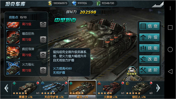 猛犸坦克全面升级武器系统,使火力值大幅提升并且无视敌方护盾。自带无视敌方护盾效果,不用再多解释了。