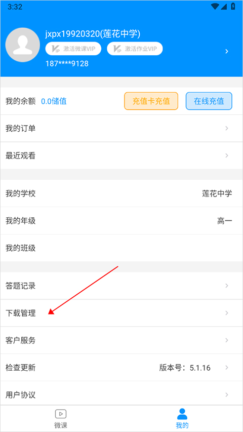 下载完后,进入我的页面中点击【下载管理】(下图红色箭头所指区域)