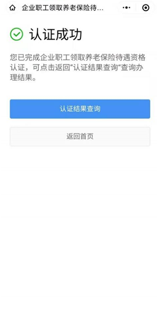 人脸识别通过的,显示认证成功,可点击【认证结果查询】按钮查询认证信息,或点击【返回首页】按钮返回粤省事首页;