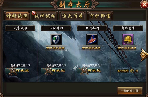 每天完成副本大厅中系列副本挑战,会获得大量经验。