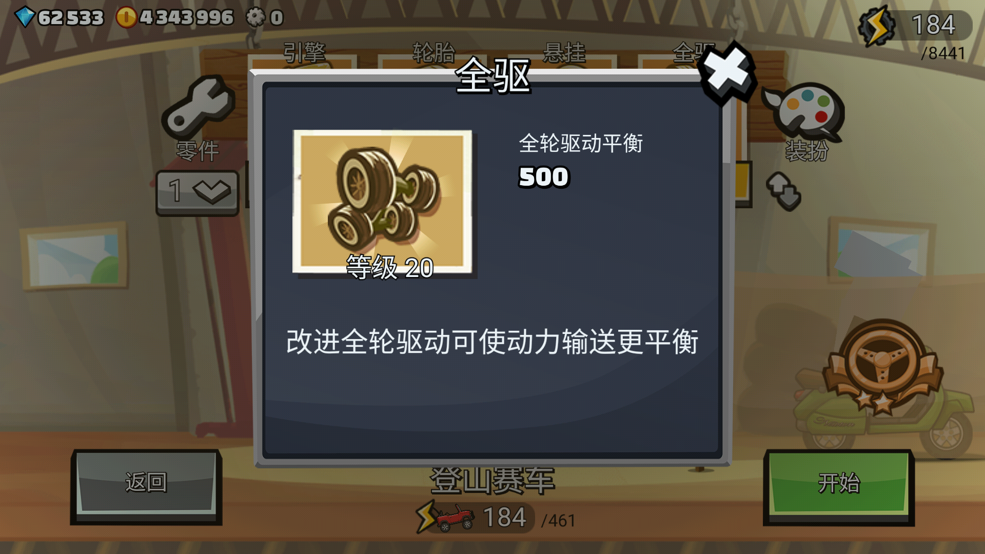 全驱:升级全驱可以让赛车的4个轮胎都输出动力,越野性能更加强悍,动力输出更加的平衡,不容易翘头!