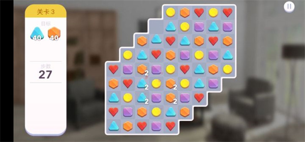 ②上面的文字已经提到,玩家需要通过三消获得金币,用来购置各样的家具、装饰等,从而完成客户委托。