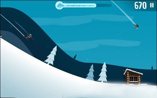 在滑雪的时候有多种环境场景可以使用,各种动物和道具都可以帮助你跑得更远。