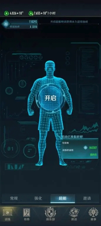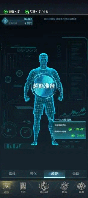 这是一项能让你的训练效果永久翻倍的超能特训,我们需要消耗经验进行升级,源力值越多,超能升级的倍率也越高。