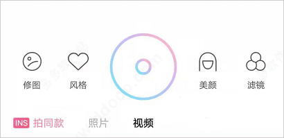 在甜盐相机APP的首页选择点击”视频“功能,点击中间的录制功能。