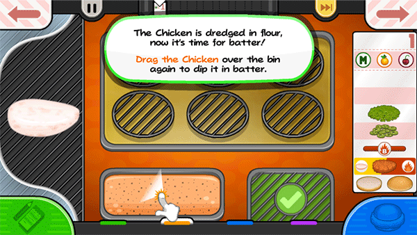 面包、面糊和油炸–给鸡肉涂上各种面包屑和面糊选项,然后将鸡肉放入油炸锅中烹饪至完美!PapaLouie需要在竞争中获得优势,所以随着时间的推移,他可能会开始引入除鸡肉以外的其他食物来炸;