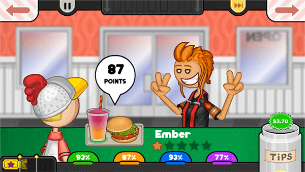 做完后,把餐点给顾客,顾客会给你评分,分越高获得的金币越高