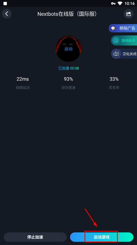 等待加速完成后,点击下方启动游戏;