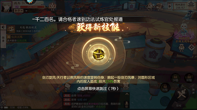在这里打败一群敌人后会获得新技能的奖励,点击任意一处关闭提示;