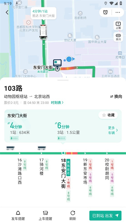之后将会为你显示公交的到站位置以及到站时间。