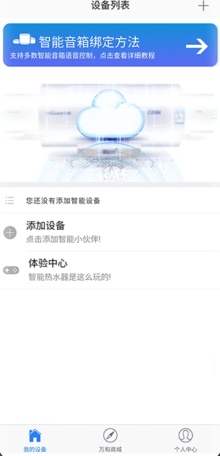 打开万和智能app,点击添加设备;