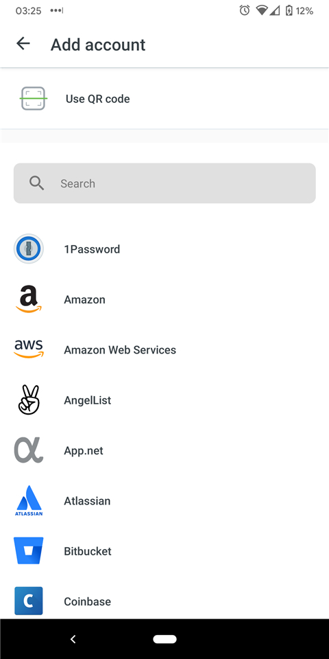 您还可以从列表中选择要添加的账户类型,然后通过扫描二维码或输入从该应用收到的激活码来选择添加该账户。详细了解如何将第三方账户添加到 Duo Mobile