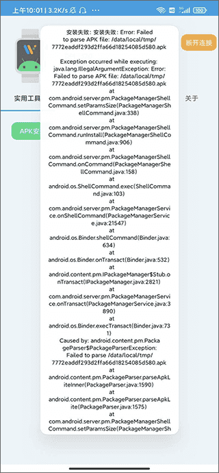 安卓11将目前无法使用手机建立热点来给手表安装软件,会提示安装失败(如下图)。可以换个路由器WIFI来安装。