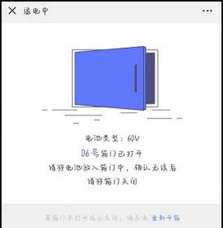 然后扫码换点柜,将电池放入弹出的空箱中,待完成即可完成退电池。