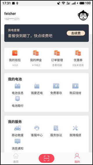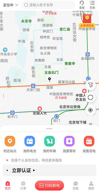进入软件【首页】之后,我们就能看到一些常用的功能,例如附近站点、我的电池等。