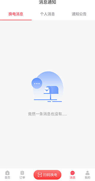 而在【消息】页面,我们还能查看所有的消息类型,如换电消息、个人消息、通知公告等。