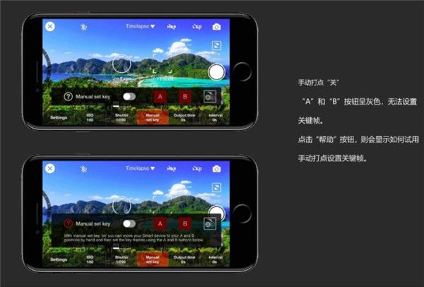 在app上操作的情况下,手机拍摄界面设置关键帧只能通过手动模式来实现。若没有打开手动模式,“A”和“B”按钮是不可点击