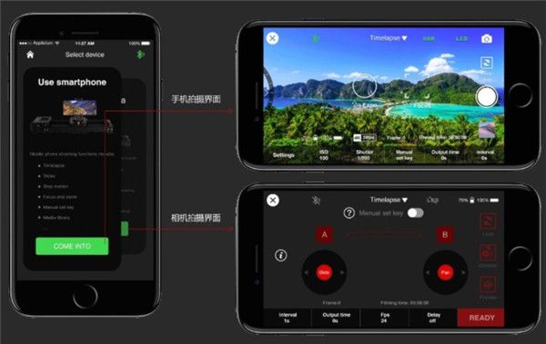通过蓝牙将软件和摄像机设备进行连接,就能实现操作