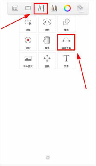 点击如下图所示的图标,选择“导向工具”画出下面的效果;