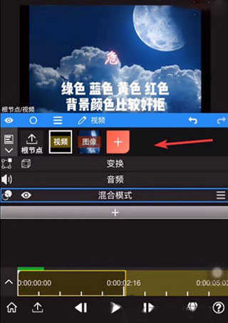 在软件中导入视频等基本素材之后,我们需要点击箭头所示的+,新建一个节点。