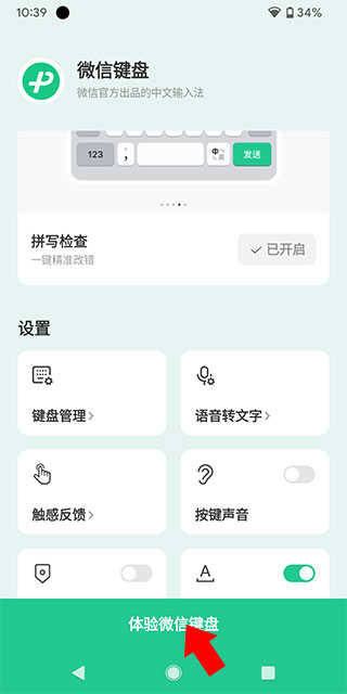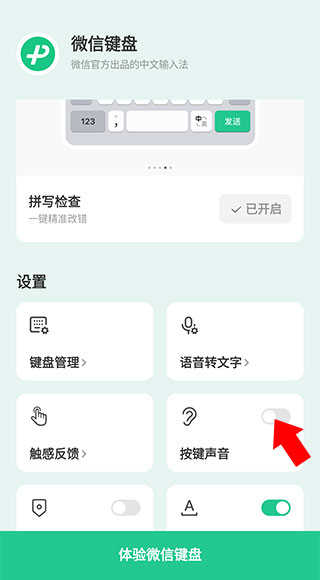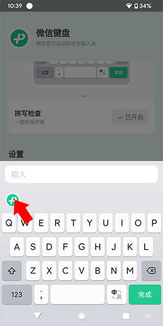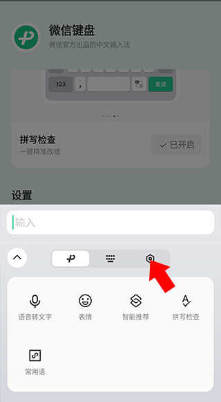 下载并打开 软件,调出微信输入法的输入界面,并点击键盘按键上方的绿色按钮