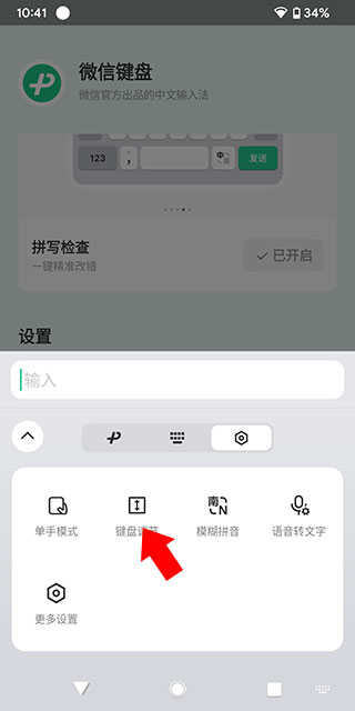 之后我们点击输入法上方的绿色按钮来进入设置界面