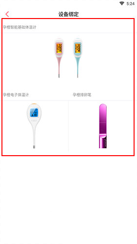 然后在设备绑定的页面中,我们可以绑定的设备有很多,在这里我们点击【孕橙智能基础体温计】;
