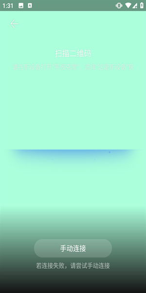 接下来进入扫描界面, 需要在新设备上打开这个软件,选择这是新设备获取二维码,对准进行扫描即可。