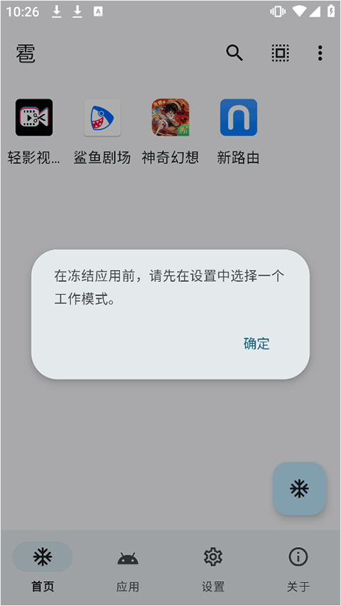 进入应用界面:打开雹app后,应用界面会显示可冻结的应用列表