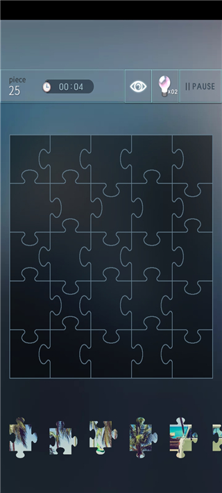 当然如果你无从下手时,还可以选择上方的灯泡进行提示,还可以点击上方的眼睛查看拼图的图片。