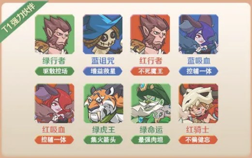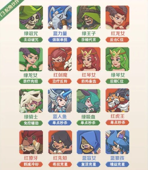 B:红双刀女、蓝双刀女、红降魔、绿野猪、蓝野猪、红吉他、红团长、绿团长、蓝弓箭、蓝狼、绿骨拳、绿怪力、蓝怪力、绿黑萨满、蓝稻草人。