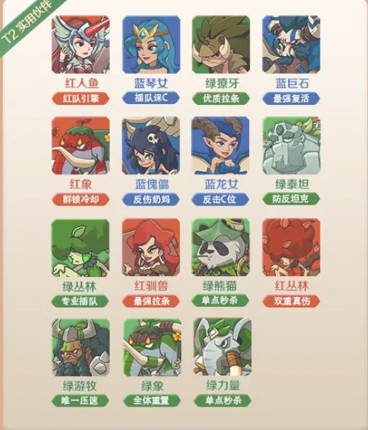 S级:蓝黑萨满、蓝团长、蓝游牧、绿速龙人、绿大象、红大象。