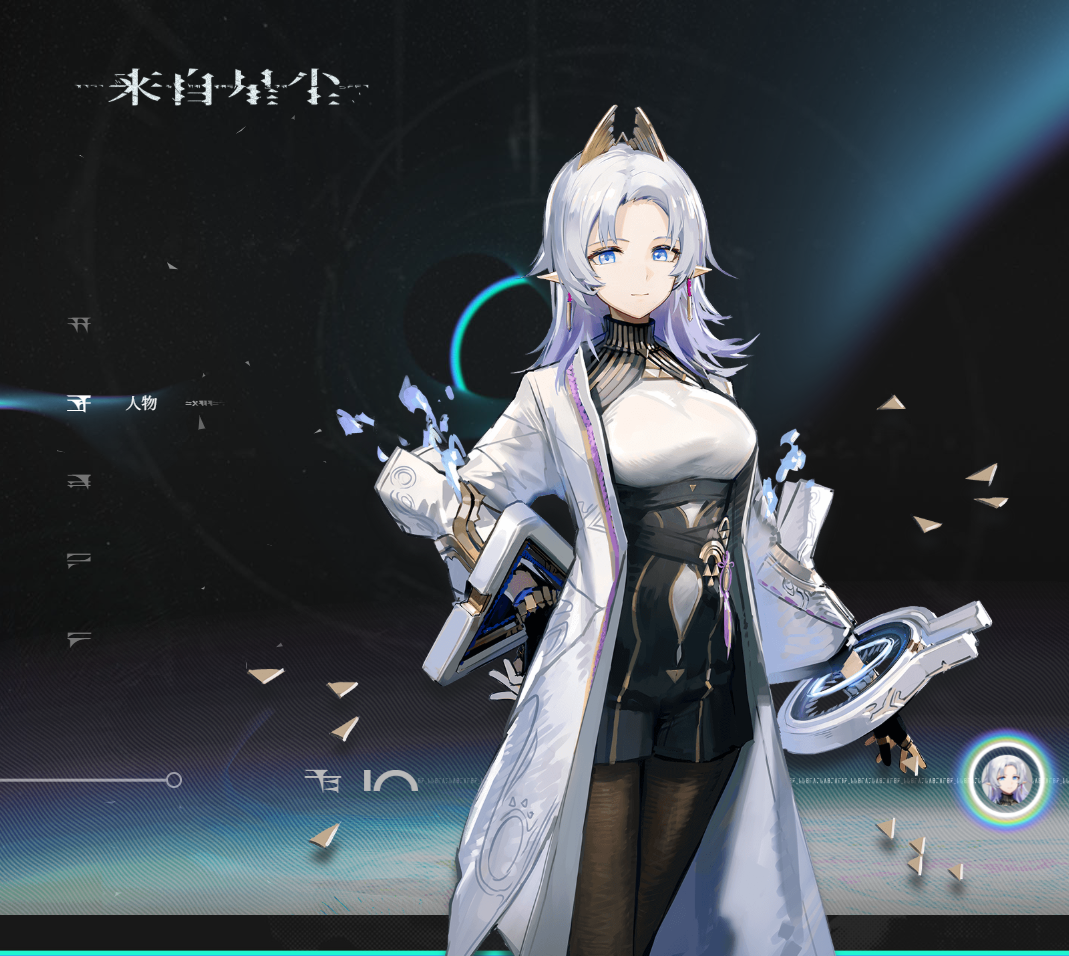雁是隶属于NOUS WAVE组织的外星调查员。她从幼时起就受到组织严酷的训练,学习各类战斗与生存相关的技巧,并熟练掌控了由星尘原质构成的右臂。