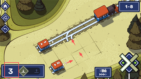 显示还有三个铁轨可以放下,按照箭头摆放即可