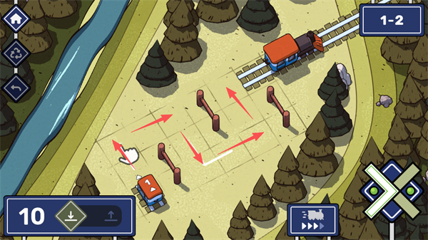 摆放、移除或重新安排火车路线,让车厢安全连接到与火车头上。但要小心,不要让它们撞到一起!