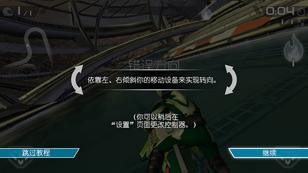 转向:依靠左、右倾斜你的移动设备来实现转向(你可以在“设置”中更改方式);