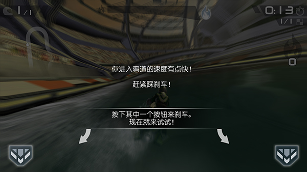 刹车:界面中有两个刹车按钮,随便按,都可以刹车,常用于弯道;
