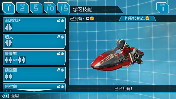 喷射加速:点击可以喷射加速,喷射加速可以通过腾空和使用特技填充;